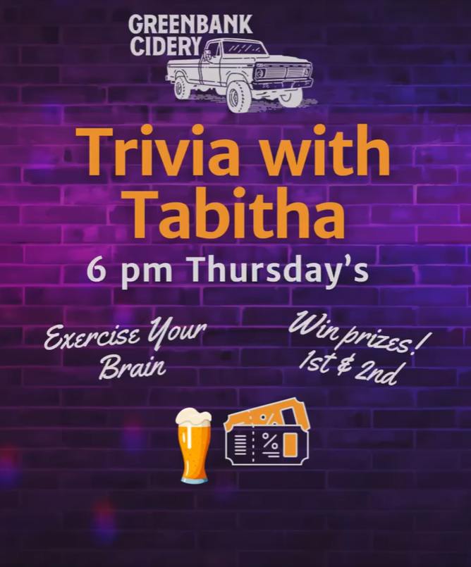 ![]() The spooktacular fun is back! Our popular Halloween Candy & Cheese Pairing event returns all day Thursday, October 30th, (or until supplies run out). Stop by the shop for a free tasting experience that's all treat and no trick! We'll have a fun assortment of your favorite Halloween candies paired with delicious cheeses, and we… ![]() Every Thursday! Join your host Tabitha for a brain-tickling Trivia series. Themes change weekly, check Greenbank Cidery Facebook events for new themes.
