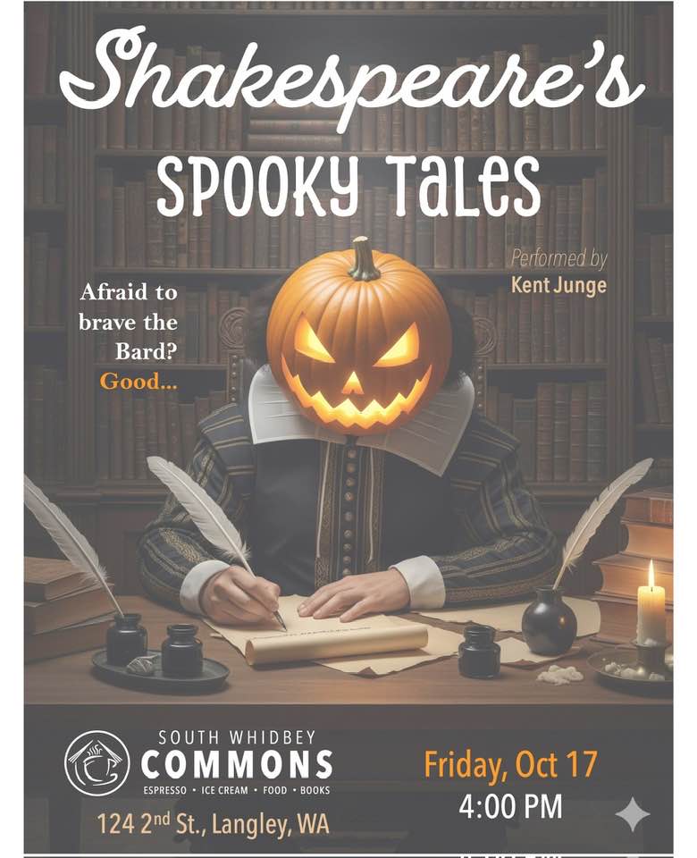 ![]() Kent Junge returns for some Spooky Tales. Friday, October 17th at 4 pm. All are welcome! South Whidbey Commons 124 2nd St, Langley