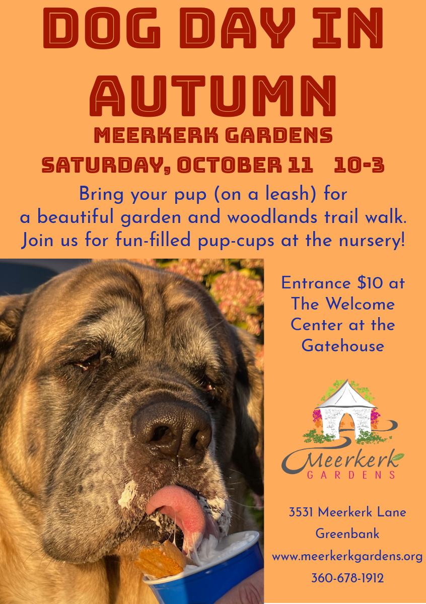 ![]() Bring your favorite doggo (on a leash) for a fun autumn day in Meerkerk Gardens. Pup cups are available! Let's celebrate our four-legged friends as we welcome in the autumn colors.