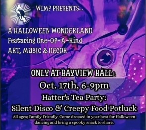 ![]() All events free by donation. 5642 Bayview Road, South Whidbey October 17th ~ 6 – 9 p.m. Hatter's Tea Party: Silent Disco & Creepy Food Potluck All ages; Family Friendly. Come dressed in your best for Halloween dancing and bring a spooky snack to share.