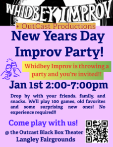 Celebrate with Whidbey Improv New Years Day Please join Whidbey Improv January 1st from 2 to 7 p.m. to ring in the new year! If you have ever been interested in improv, this is a great opportunity to meet us, have snacks and watch/play improv party games! EVERYONE IS WELCOME, no previous experience needed. Why…